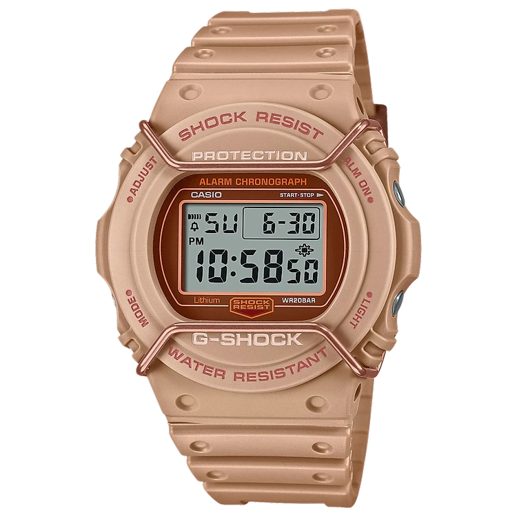 Chào mừng đến với mẫu G-SHOCK “tông xuyệt tông” – chiếc đồng hồ hoàn hảo cho phong cách thời trang mới nhất với bảng màu đơn sắc được ưa thích. Màu tự nhiên với lớp hoàn thiện nhám mờ, được nhấn nhẹ bằng lớp bảo vệ mặt đồng hồ kim loại cùng tông màu. Lớp bảo vệ dây kim loại trên mặt đồng hồ là điểm phá cách mới cho dòng 2100. Chọn trong số ba mẫu đồng hồ: DW-5600 góc cạnh, DW-5700 bo tròn và GA-2100 có gờ bát giác.