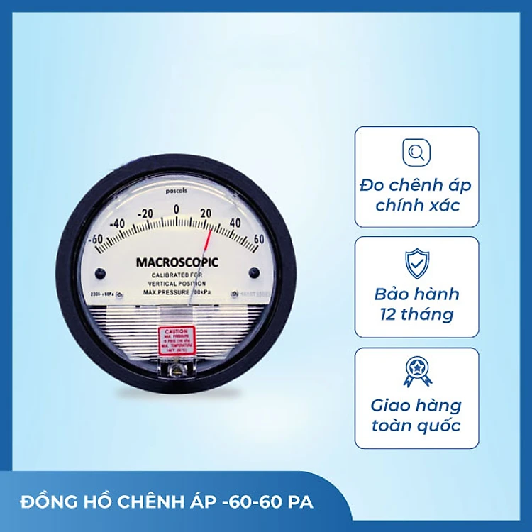 Đồng hồ chênh áp Macroscopic dải đo -60-60Pa