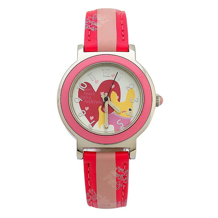 - Mặt đồng hồ chế tác từ chất liệu kính cứng nên hạn chế trầy xước, rất thích hợp cho các bé năng động. Bên trong có các cột mốc chỉ giờ thể hiện bằng số to rõ, giúp bé dễ dàng theo dõi thời gian hơn.