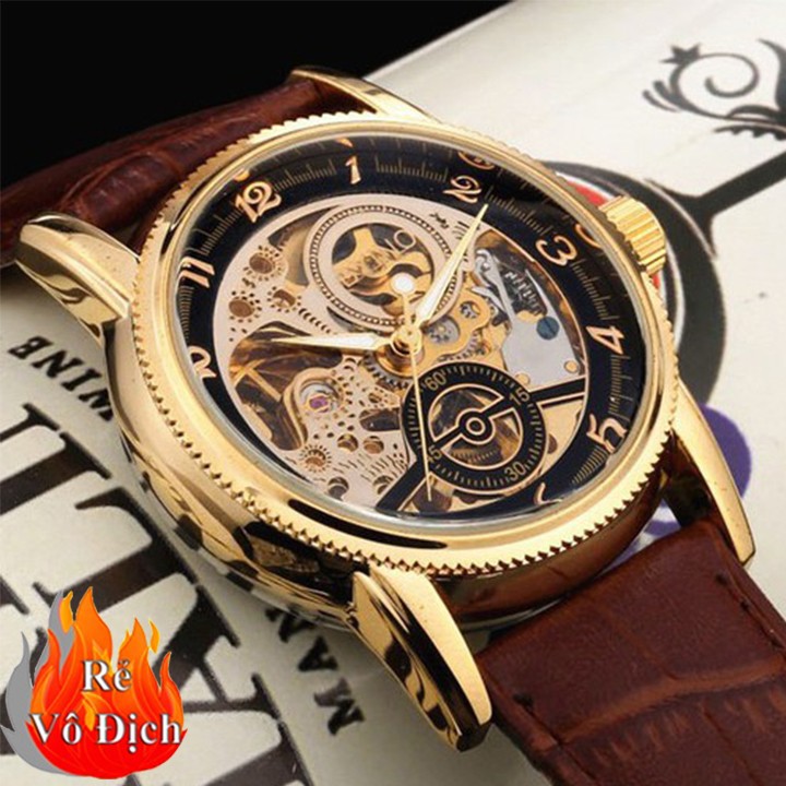 Đồng hồ cơ lộ máy dây da bò cao cấp, Đồng Hồ Nam Cơ Dây Da