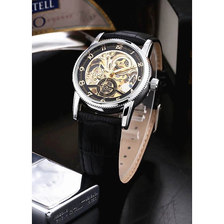 Đồng hồ cơ nam lộ máy dây da bò cao cấp, Đồng Hồ Nam Cơ Dây Da