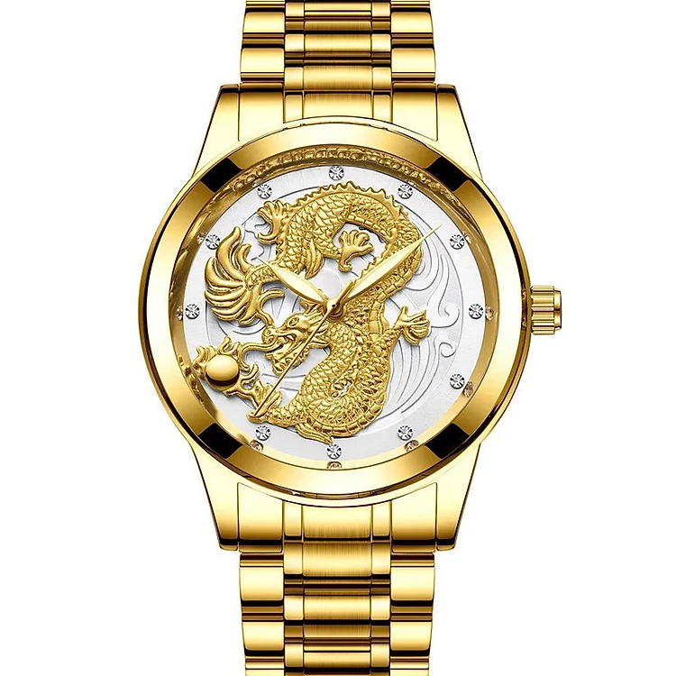 Nếu bạn tuổi Thìn thì đây lại càng là chiếc đồng hồ tuyệt vời dành cho bạn! Từ ngàn đời nay, biểu tượng Rồng tượng trưng cho sự linh thiêng, quyền uy và sức mạnh. Nay biểu tượng Rồng đó được khắc họa một cách chân thực và rõ nét qua việc chạm khắc đầy tinh xảo.