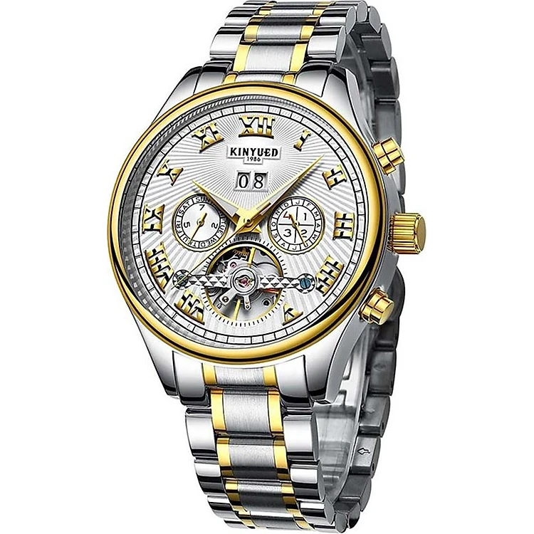 Đồng hồ cơ nam Kinyued - trắng vàng
