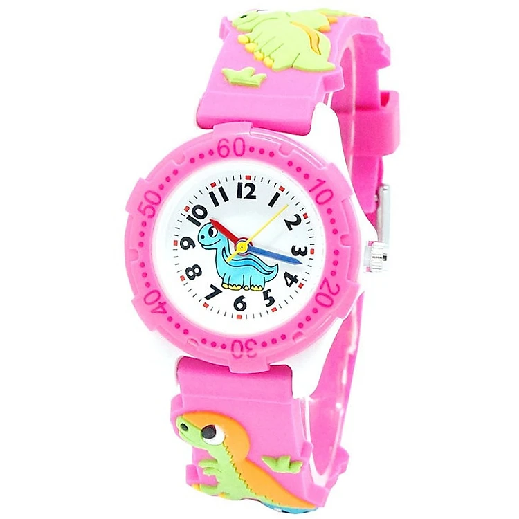 - Đồng Hồ Dây Cao Su Cho Bé Hình Khủng Long có phần nhựa bao quanh mặt kính tạo cho người nhìn cảm giác lạ mắt và hết sức đáng yêu.