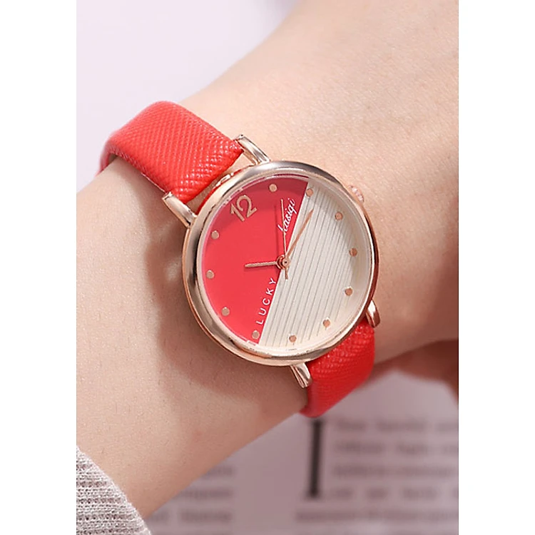 Đồng hồ dây da nữ phong cách Hàn Quốc, tặng vòng đeo tay - Hàng nhập khẩu