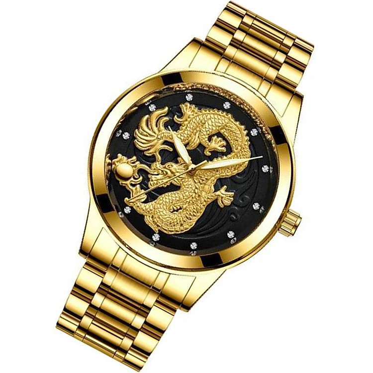 Đồng hồ đeo tay nam chạm rồng vàng nổi 3D