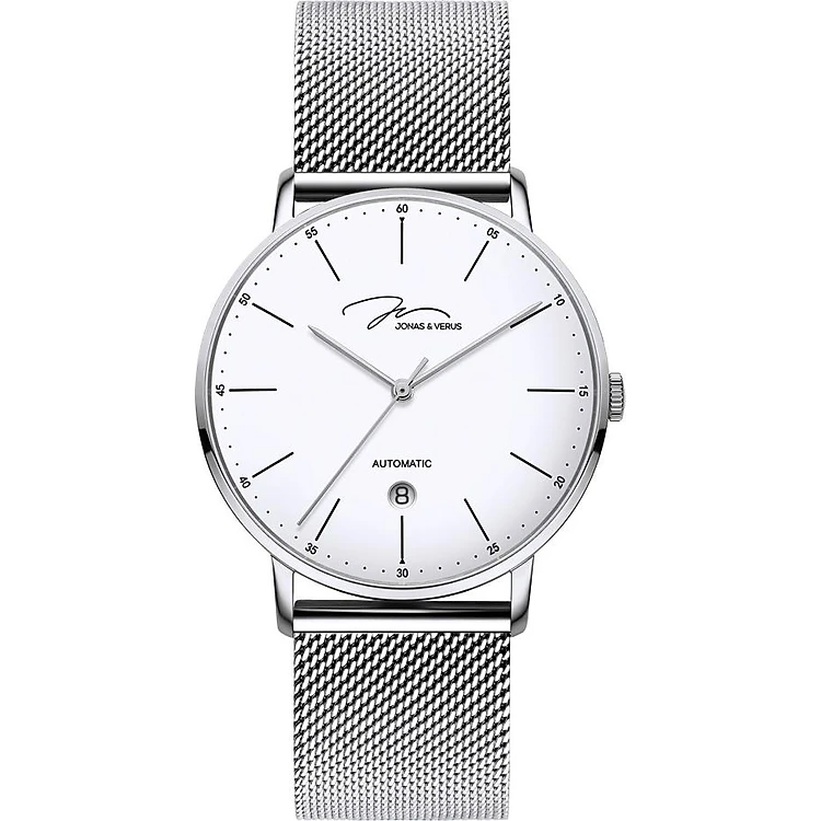 Đồng hồ đeo tay Nam hiệu JONAS & VERUS Y01544-A0.WWWBW, Máy Cơ (Automatic), Kính mo tráng sapphire hạn chế trầy xước, Dây lưới thép không gỉ 316L