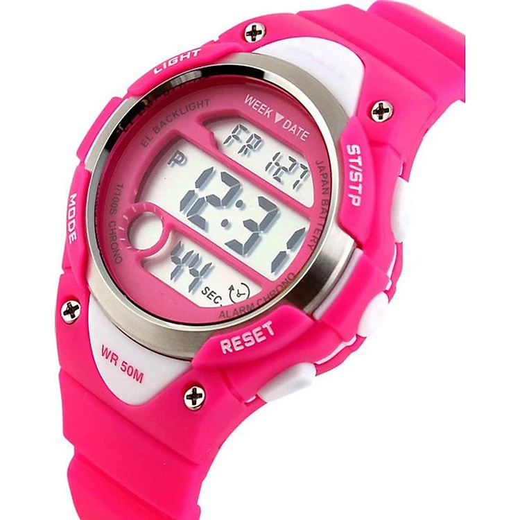 Dành cho: Trẻ em Chất liệu vỏ: Cao Su và Nhựa Chất liệu si: Không si Chất liệu mặt trước: Nhựa cứng Chất liệu mặt sau: Thép Chất liệu dây: Cao su mềm, êm tay Loại mặt: Điện tử Kích thước mặt: 31mm - 37mm Kích thước dây: 17mm Độ dày mặt: 12mm Độ dày dây: 2mm Tổng chiều dài: 23mm Số kim: Xem giờ / phút điện tử Số lịch: Lịch Thứ / ngày / tháng điện tử Độ chịu nước: Chịu nước tốt; tránh các hoạt động bơi lội Năng lượng sử dụng: Pin