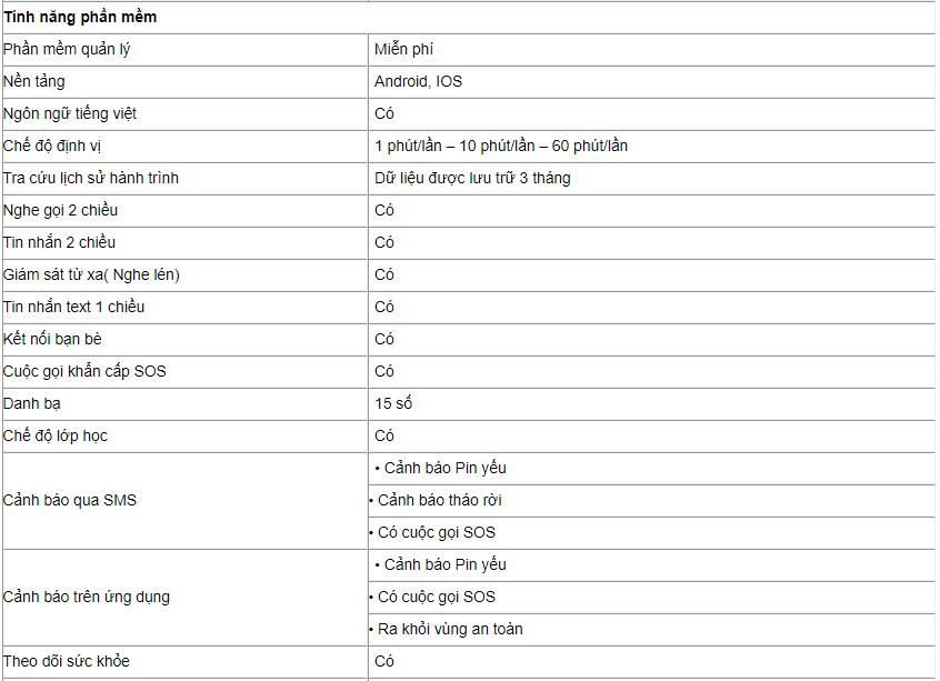 Bảng thông số kỹ thuật :