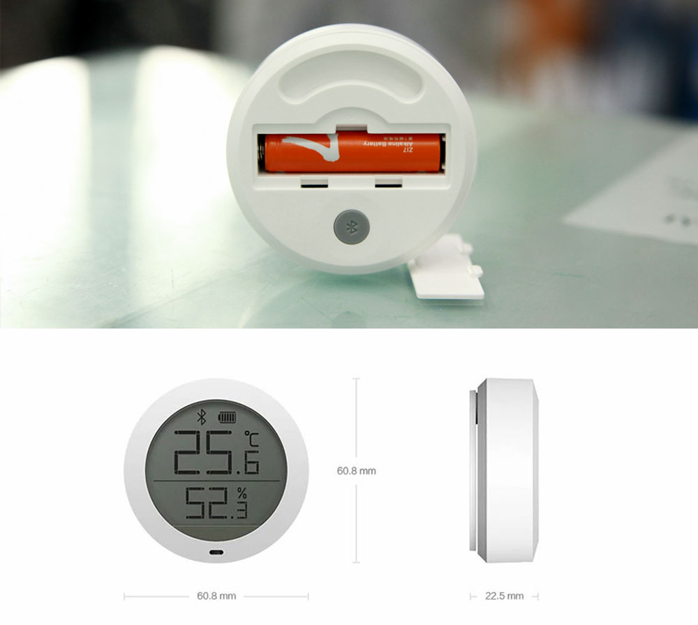 Cảm biến nhiệt độ độ ẩm Bluetooth Xiaomi có thể dễ dàng thu hút sự chú ý của bạn nhờ chính thiết kế vẻ ngoài vô cùng “tí hon”. Cảm biến có dạng tròn với kích thước siêu nhỏ so với một chiếc cảm biến thông thường (60.8 x 60.8 x 22.5mm). Nhờ thiết kế như vậy, cảm biến sẽ không gây choán chỗ cho không gian trong nhà. Đó là chưa nói đến việc cảm biến có thể treo hoàn toàn trên tường ở bất cứ đâu trong căn phòng nhà bạn.