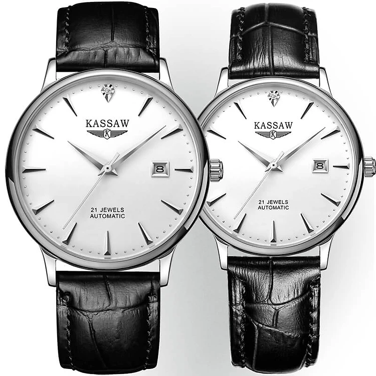 Đồng hồ đôi chính hãng KASSAW K865-2 Kính sapphire ,chống xước ,Chống nước 50m ,Bảo hành 24 tháng,Máy cơ (Automatic),dây da cao cấp, thiết kế đơn giản dễ đeo