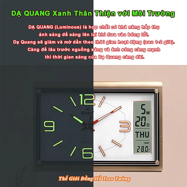 Đồng Hồ Cao Cấp EASTAR Có DẠ QUANG & LỊCH và NHIỆT KẾ ĐIỆN TỬ - Máy KIM TRÔI - Tặng Pin Maxell - Decor Trang Trí Nhà - BH 1 Năm