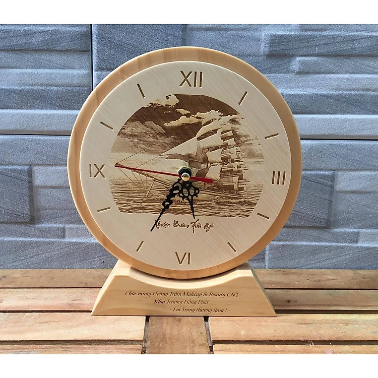Đồng hồ gỗ khắc hình với chất liệu gỗ maple cao cấp : Bề mặt đồng hồ sáng , vân gỗ mềm mịn , tự nhiên . Khắc hình ảnh sẽ rất tự nhiên, có hồn