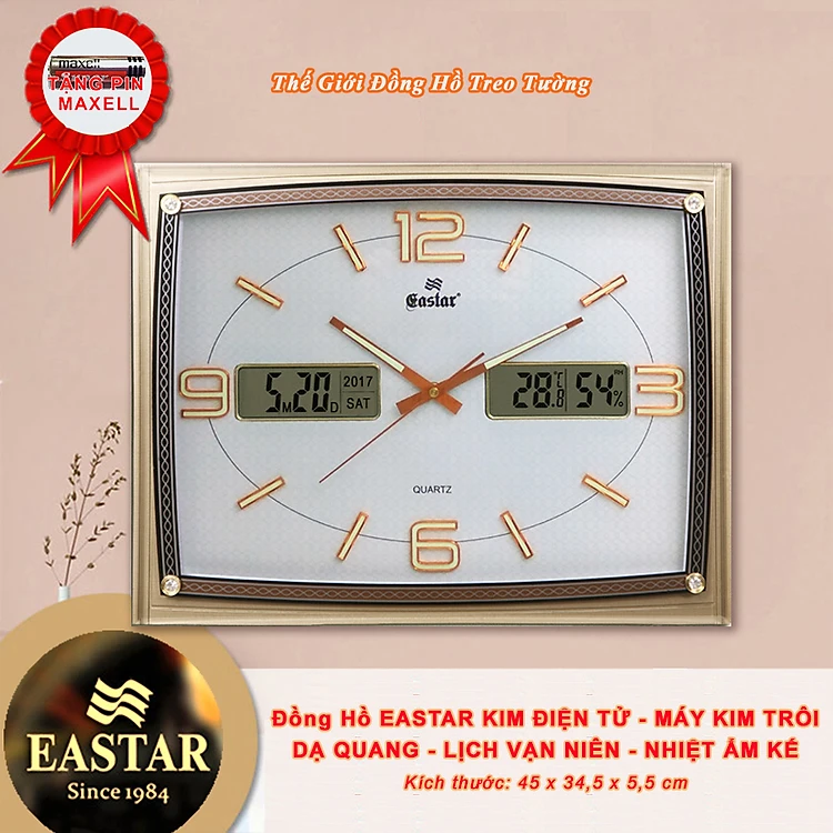 Đồng Hồ Kim Điện tử KIM TRÔI EASTAR Cao Cấp có DẠ QUANG – LỊCH Vạn niên, NHIỆT ẨM KẾ