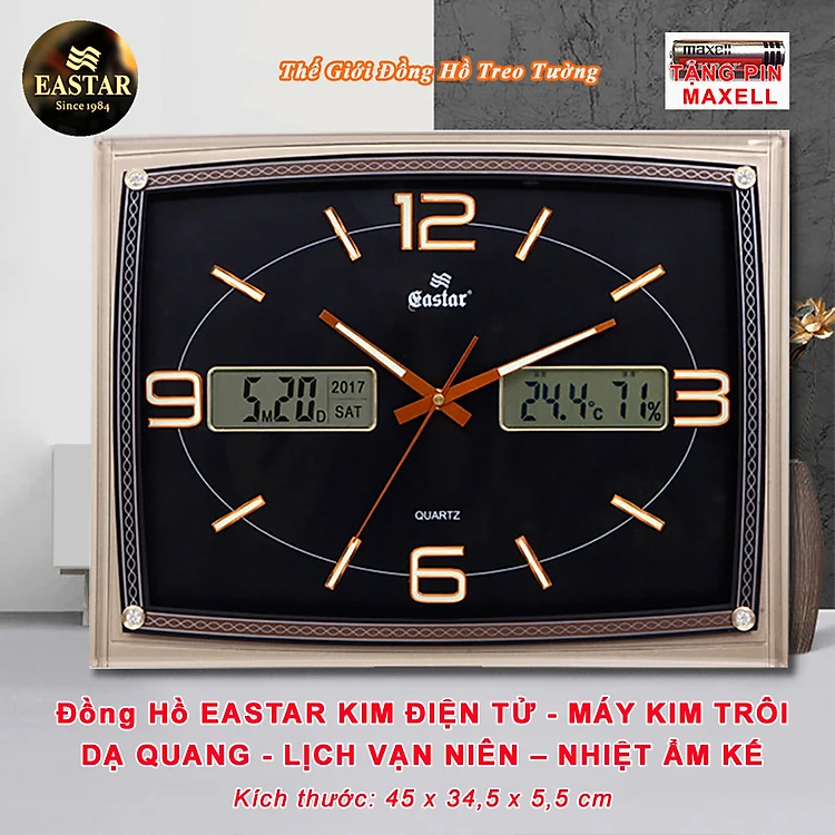 Đồng Hồ Kim Điện tử KIM TRÔI EASTAR Cao Cấp có DẠ QUANG – LỊCH Vạn Niên và NHIỆT ẨM Kế Điện Tử