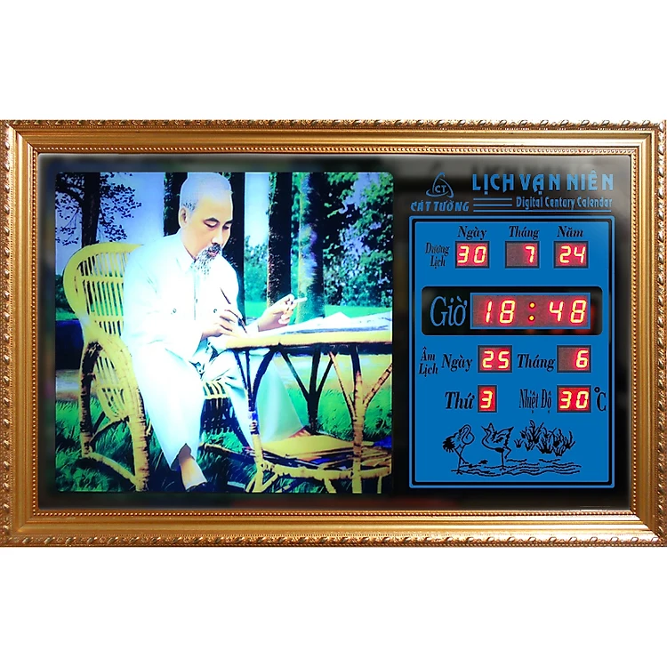 Đồng hồ Lịch Vạn Niên tranh đèn treo tường hiệu Cát Tường_tranh Bác Hồ 55617_KT 55x35x7cm_Có 2 loại (Không remote đèn và Có remote đèn)