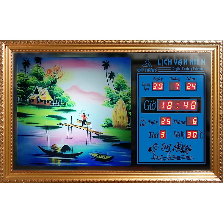 Đồng hồ Lịch Vạn Niên tranh đèn treo tường hiệu Cát Tường_tranh Đồng Quê 55443_KT 55x35x7cm_Có 2 loại (Không remote đèn và Có remote đèn)