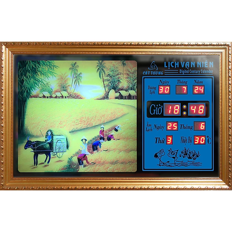 Đồng hồ Lịch Vạn Niên tranh đèn treo tường hiệu Cát Tường_tranh Đồng Quê 55444_KT 55x35x7cm_Có 2 loại (Không remote đèn và Có remote đèn)