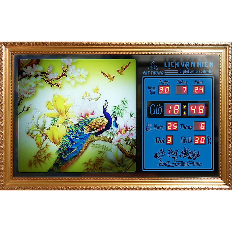 Đồng hồ Lịch Vạn Niên tranh đèn treo tường hiệu Cát Tường_tranh Phú Quý Cát Tường 55310_KT 55x35x7cm_Có 2 loại (Không remote đèn và Có remote đèn)