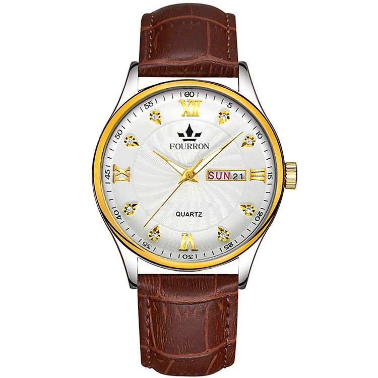 Đồng Hồ Nam Fourron F666 mặt đính đá chạy 2 lịch dây da PU Đồng Hồ Không Thấm Nước Đồng Hồ Doanh Nhân Đơn Giản Đồng Hồ Sinh Viên