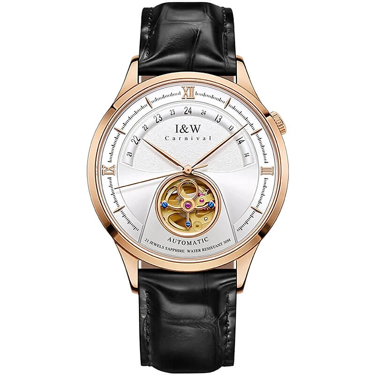 Đồng hồ nam chính hãng IW CARNIVAL IW525G-2 Kính sapphire ,chống xước,Chống nước 30m ,Bảo hành 24 tháng,Máy cơ (Automatic),Dây da cao cấp,thiết kế lộ cơ thể thao