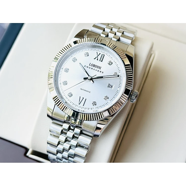 Đồng hồ nam chính hãng Lobinni L19019-2,Kính sapphire chống xước,chống nước 50M,bảo hành 24 tháng,máy cơ(Automatic) Nhật bản,dây kim loại thép không gỉ 316L,hàng mới full box hãng đầy đủ