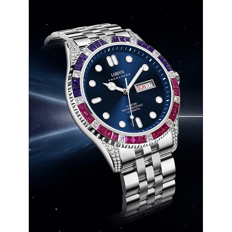 Đồng hồ nam chính hãng LOBINNI LB19036G-T2 Kính Sapphire,chống xước,chống nước 50M,BH 24 tháng,máy cơ(Automatic),mặt xanh dây thép trắng xịn