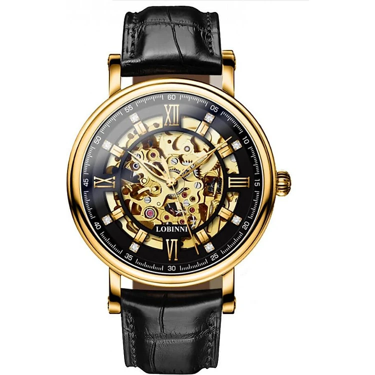 Đồng hồ nam chính hãng LOBINNI L9010-1 ,Kính sapphire chống xước,Chống nước 50m,bảo hành 24 tháng,Máy cơ(Automatic,dây da đen xịn,máy lộ cơ