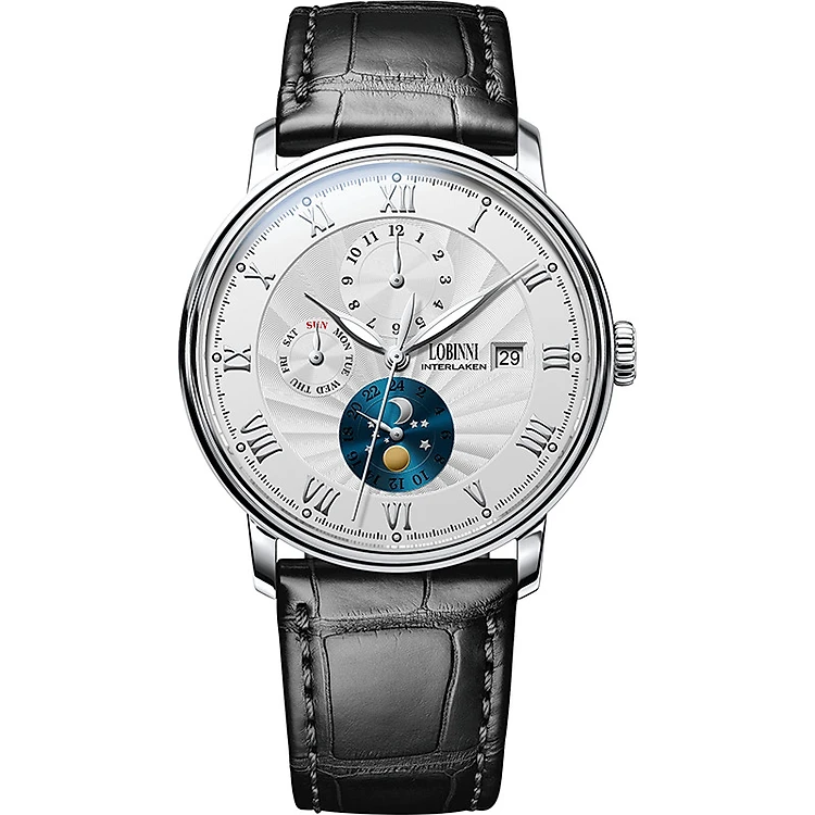 Đồng hồ nam chính hãng LOBINNI LB11023G-D4 Kính sapphire chống xước,chống nước 50m,mặt trắng vỏ trắng dây da đen xịn, thép không gỉ 316L,Đồng hồ cơ (Automatic) bảo hành 24 tháng,thiết kế đơn giản và sang trọng