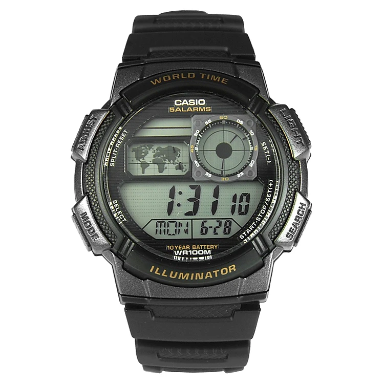 - Đồng Hồ Nam Dây Cao Su Casio AE-1000W-1AVDF (44mm) - Đen tạo điểm nhấn trẻ trung, năng độnng nơi cổ tay với tông màu cá tính, mặt tròn cổ điển với chỉ số giờ điện tử giúp phong cách trang phục thường ngày của bạn thêm phần thu hút hơn.