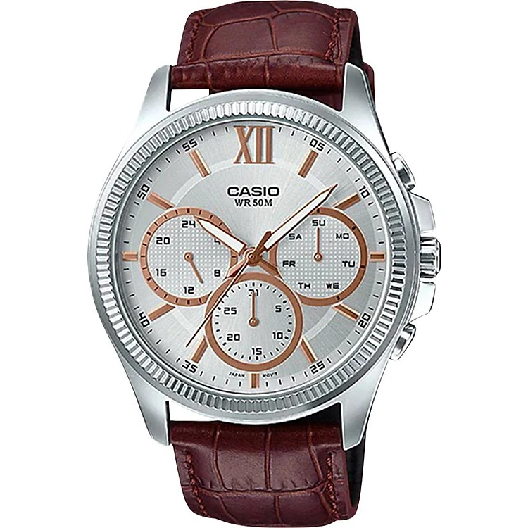 Đồng Hồ Nam Dây Da Casio MTP-E315L-7AVDF (42mm) sở hữu thiết kế đầy sang trọng không chỉ là một công cụ đo thời gian mà còn là một món đồ giúp tôn lên đẳng cấp, sự sành điệu của bạn.