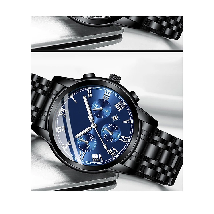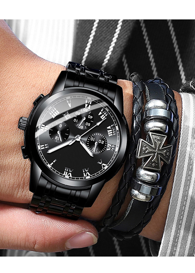 Đồng Hồ Nam Dây Thép Không Gỉ Cao Cấp Dây Đen F505