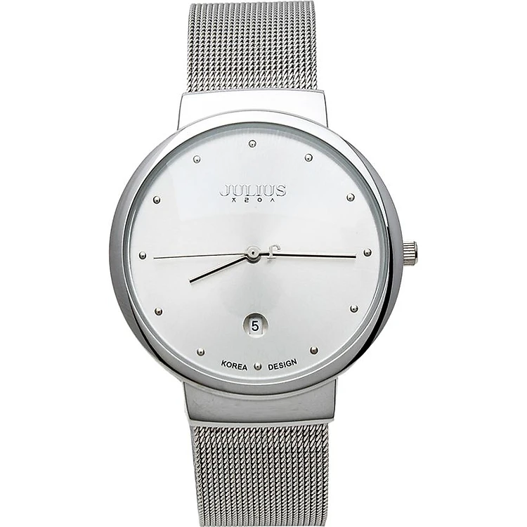 Đồng Hồ Nam Dây Thép Không Gỉ Julius JA - 426 (40mm) - Mặt Bạc có thiết kế thời trang với khung viền màu bạc sáng bóng sang trọng cùng dây thép cá tính, sản phẩm giúp tôn lên vẻ ngoài lịch lãm và sành điệu cho các quý ông.