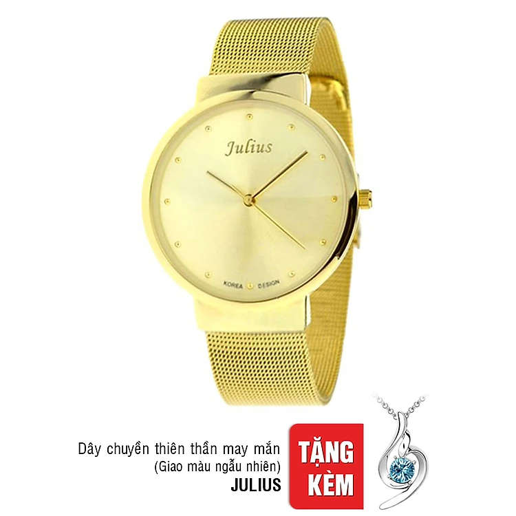 Đồng Hồ Nam Dây Thép Không Gỉ Julius JA - 426 (40mm) - Mặt Hoàng Kim + Tặng Dây Chuyền Thiên Thần May Mắn Màu Ngẫu Nhiên