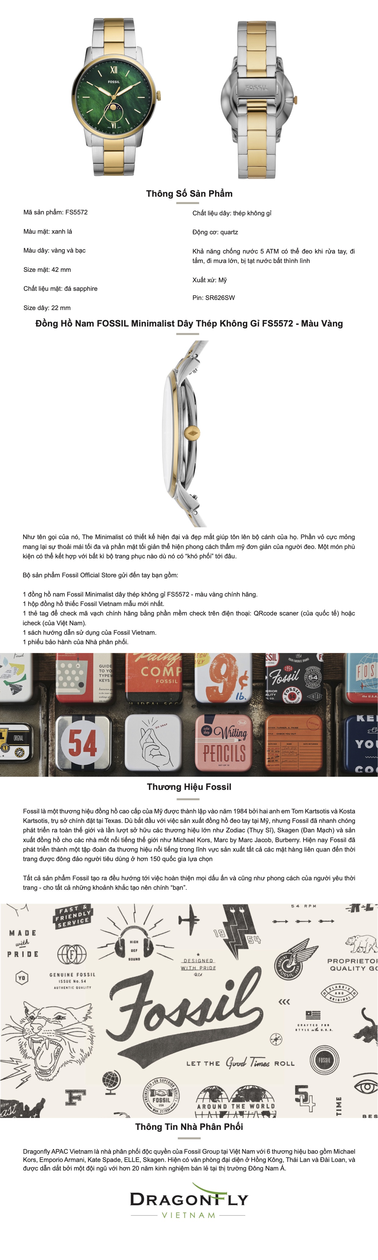 Đồng hồ nam FOSSIL Minimalist dây thép không gỉ FS5572 - vàng