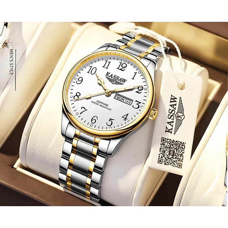 Đồng hồ nam hãng KASSAW K612-1 Kính sapphire ,chống xước,Chống nước 50m ,Bảo hành 24 tháng,dây kim loại ,máy (Quartz),Thiết kế đơn giản và sang trọng
