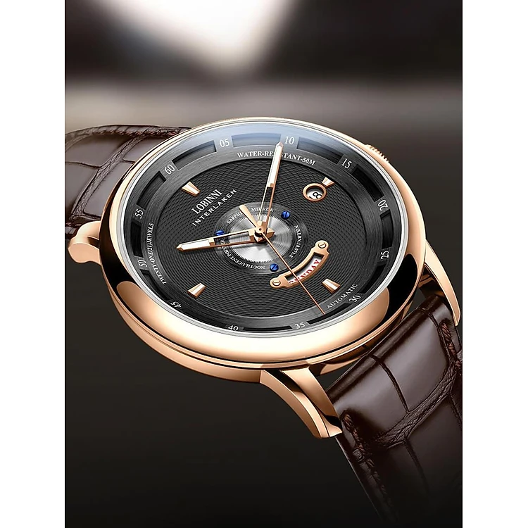 Đồng hồ nam chính hãng LOBINNI LB18071G-D2 hàng mới fullbox ,kính sapphire,chống xước,chống nước 50m,Bh 24 tháng,máy cơ (automatic),mặt đen dây da nâu xịn