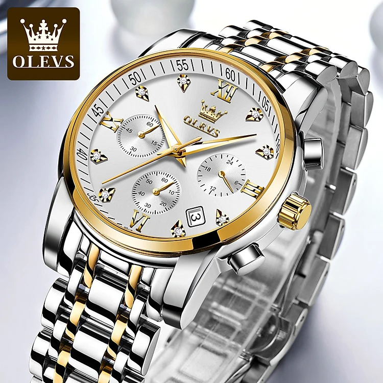 Đồng Hồ Nam OLEVS-2858 Mặt Tròn Mạ Vàng 18k Chống Nước Chạy Đủ 6 Kim Có Ô Lịch Ngày Khóa Bướm Có Hộp In Logo Chính Hãng