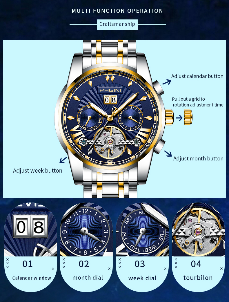 Đồng hồ PAGINI là sự kết hợp tuyệt vời của những công nghệ sản xuất đồng hồ hàng đầu :