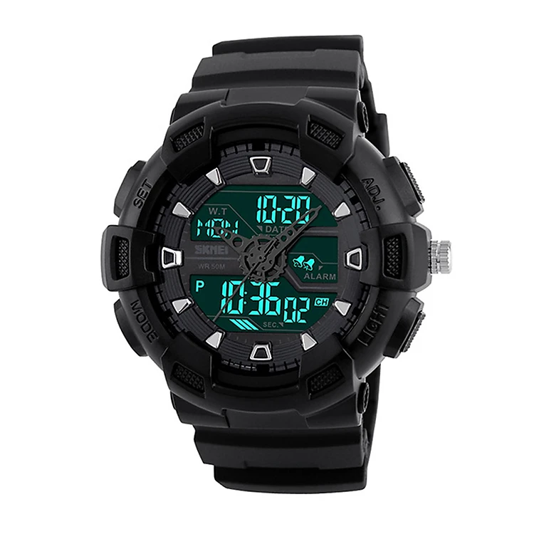 Với chức năng vừa kim vừa điện tử kết hợp tạo nên phong cách độc đáo cùng khả năng quản lý thời gian tuyệt vời với các chức năng báo thức, đo thời gian, xem ngày tháng, xem 2 múi giờ.