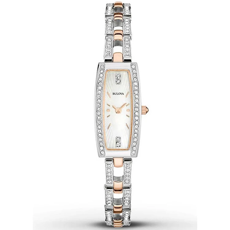 Đồng Hồ Nữ Bulova Đính Đá Swarovski Dây Thép Không Gỉ 98X110 - Mặt Xà Cừ