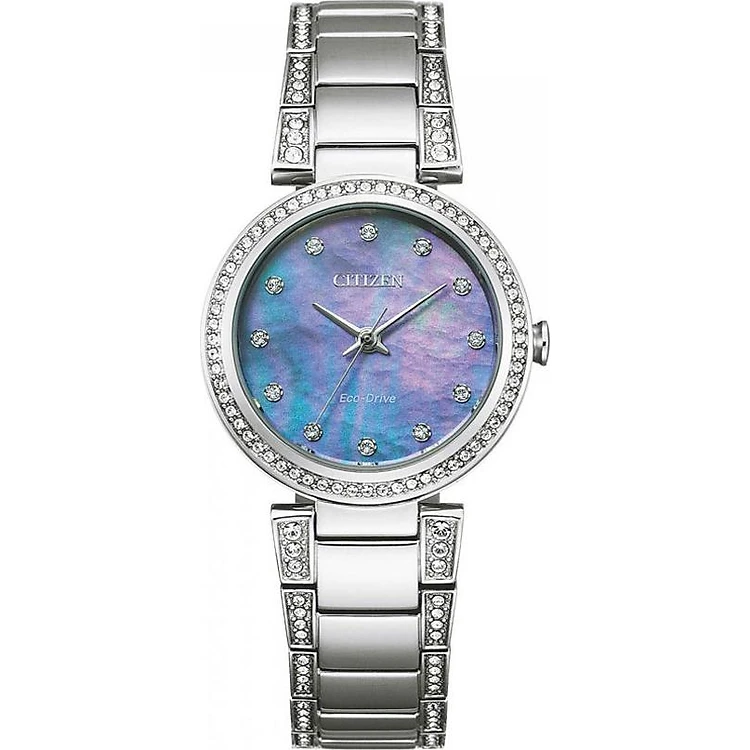 - Đồng Hồ Citizen Nữ Đính Đá Swarovski Dây Kim Loại Eco-Drive (Năng Lượng Ánh Sáng) EM0840-59N - Mặt Xà Cừ (28mm) đến từ thương hiệu đồng hồ nổi tiếng và đang khẳng định mình với vị trí số 2 trong ngành công nghiệp đồng hồ Nhật Bản, thiết kế sang trọng mà cổ điển với chất lượng hoàn hảo.