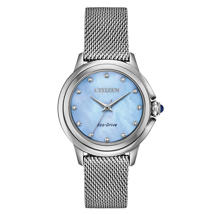 Đồng Hồ Nữ Citizen Đính Kim Cương Dây Thép Không Gỉ EM0790-55N - Mặt Xà Cừ (Sapphire)