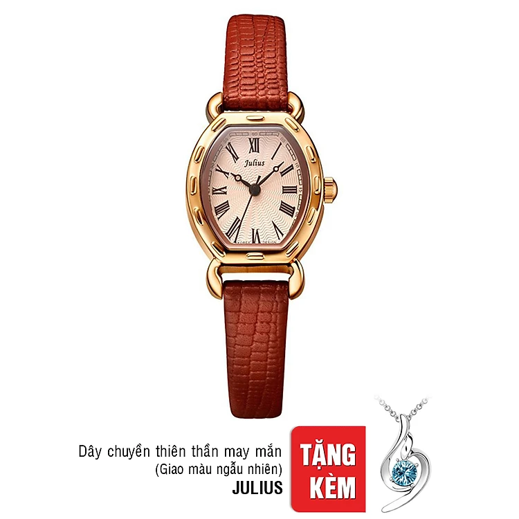 - Đồng Hồ Nữ Dây Da Julius JA - 544 (21mm) - Mặt Nâu Dây Nâu có thiết kế mặt đeo trẻ trung, xinh xắn cùng tông màu nâu cá tính của dây đeo và khung viền màu vàng thanh lịch giúp tôn lên sự hoàn mỹ và thu hút đặc biệt nơi cổ tay.