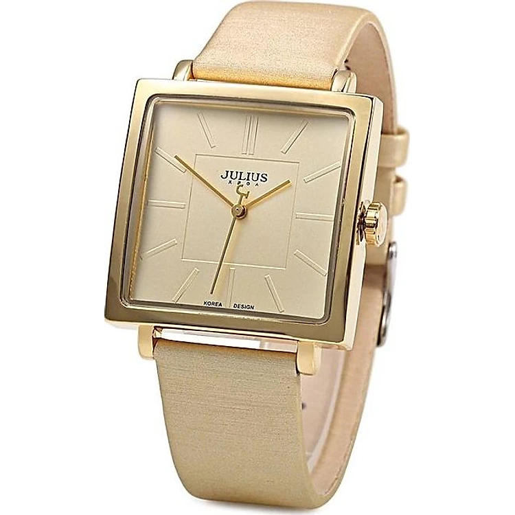 Đồng Hồ Nữ Dây Da Julius Ju1213 - Vàng Kem sở hữu thiết kế thời trang trẻ trung, sang trọng với mặt đồng hồ vuông trong suốt, mặt kính khoáng cao cấp trong suốt rõ nét, độ cứng cao. Đặc biệt, dây da Genuine leather bền bỉ phù hợp với nữ, sinh viên, nhân viên văn phòng, doanh nhân…