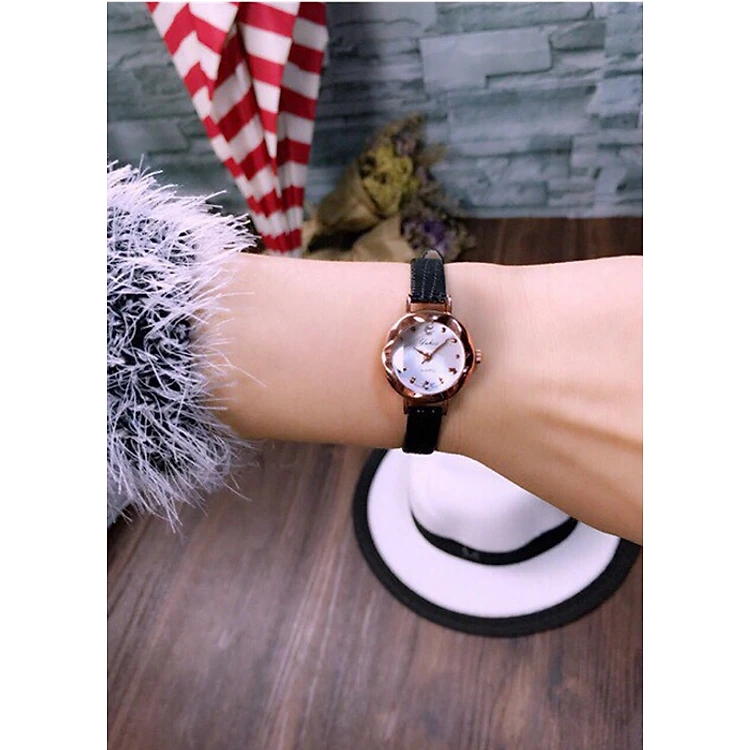 Đồng hồ nữ dây da mặt kính vát 3d thời trang sành điệu