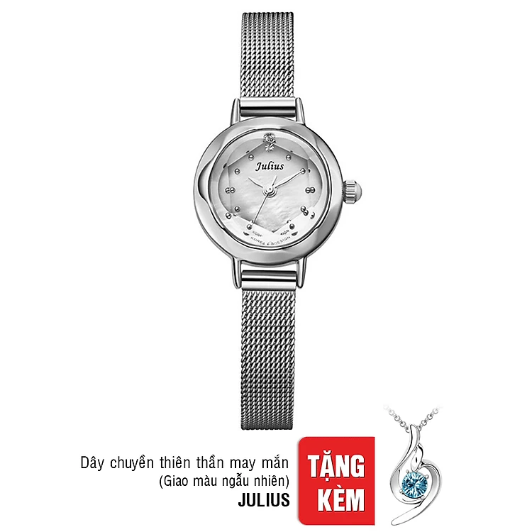 - Đồng Hồ Nữ Dây Kim Loại Julius JA-482H (22mm) - Bạc mang phong cách sang trọng, tinh tế và đẳng cấp, đạt đến trình độ thẩm mỹ cao trong thiết kế tạo nên điểm nhấn thời thượng nơi cổ tay phái đẹp.