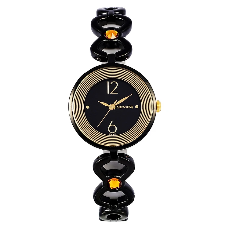 - Đồng Hồ Nữ Dây Kim Loại Sonata 8136NM01 (25mm) - Đen có vỏ được làm từ hợp kim thép không gỉ, cho bề mặt bóng sáng, bền đẹp, bảo vệ lõi máy bên trong hiệu quả.