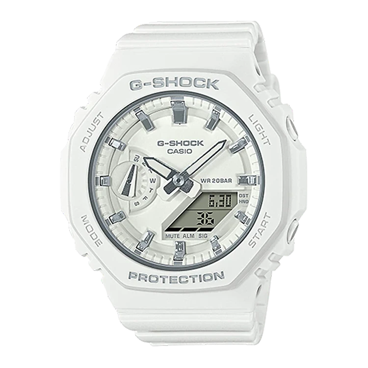 Gờ bát giác, mặt đồng hồ phẳng, vạch giờ đơn giản và cấu trúc bảo vệ lõi carbon vốn là những tính năng đặc biệt của GA-2100 hiện đã có trong cấu hình nhỏ gọn.