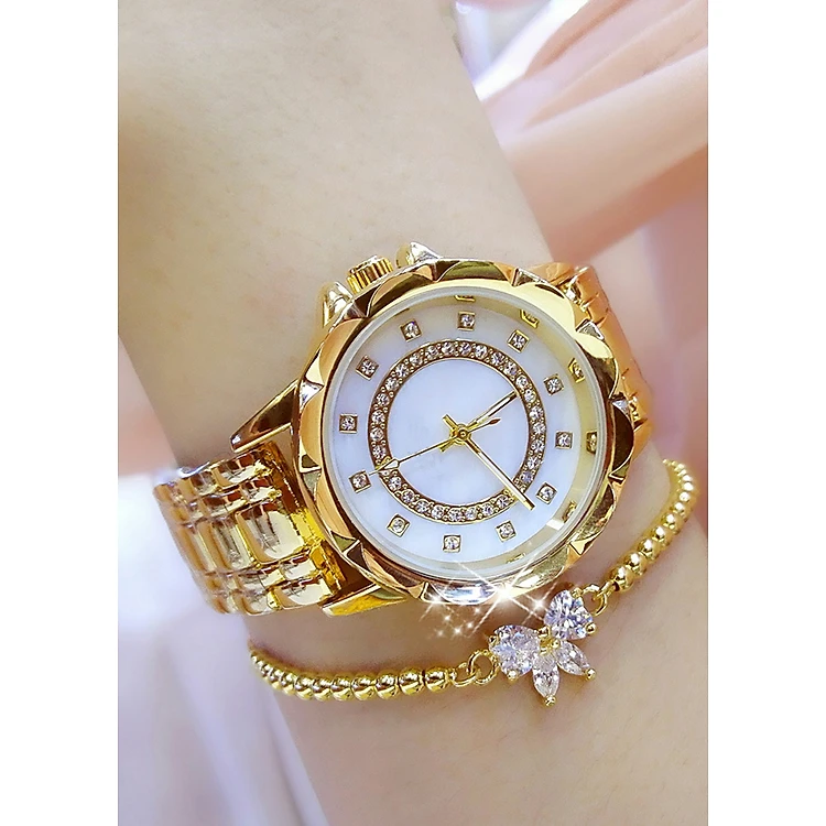 Đồng hồ nữ thời trang BS01 chính hãng chống nước 3ATM (30m) thiết kế theo phong cách năng động của Hàn Quốc với màu vàng cá tính hoặc màu trắng sang trọng, kết hợp hoa văn trạm khắc cùng mặt đính đá giả kim cương tạo nên phong cách quý phái cho người đeo.
